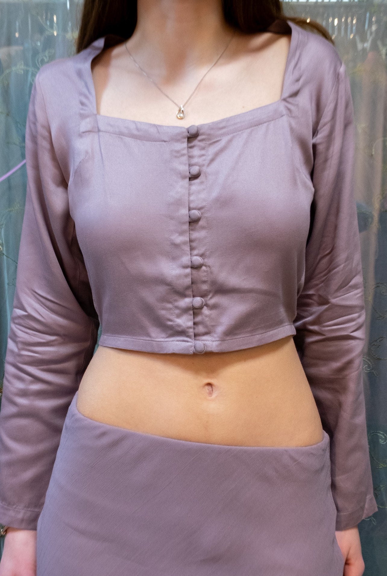 Inspired by romantic edwardian silhouettes, the Wisteria Top has cloth covered buttons and hidden clasps to flatter a larger bust. The elastic waist in the back also gives flexibility with a variety of body shapes.